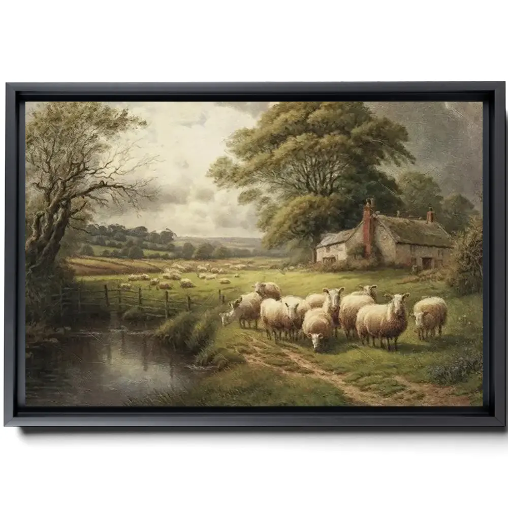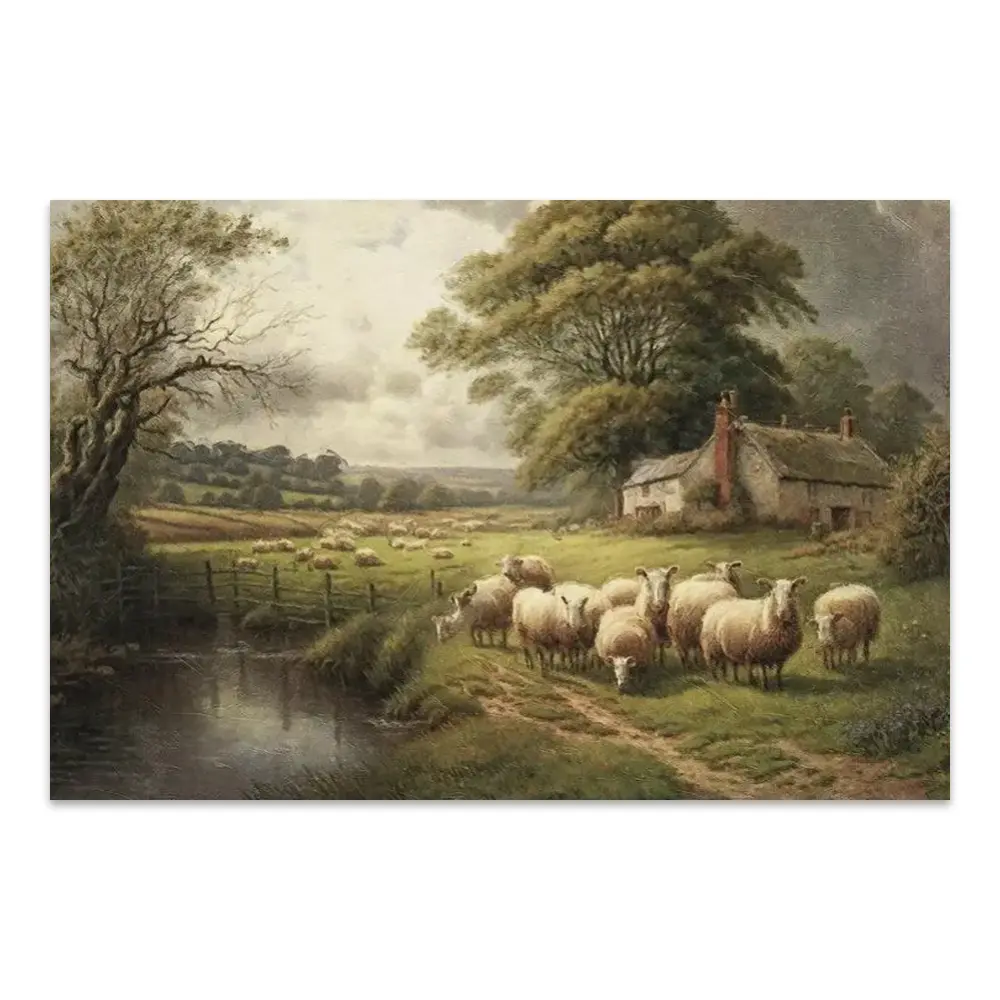 Sheep Grazing By The River Vintage Art Reproduction Vintage Home Decor Large Canvas Wall Art Vintage Farmhouse Decor Vintage Landscape