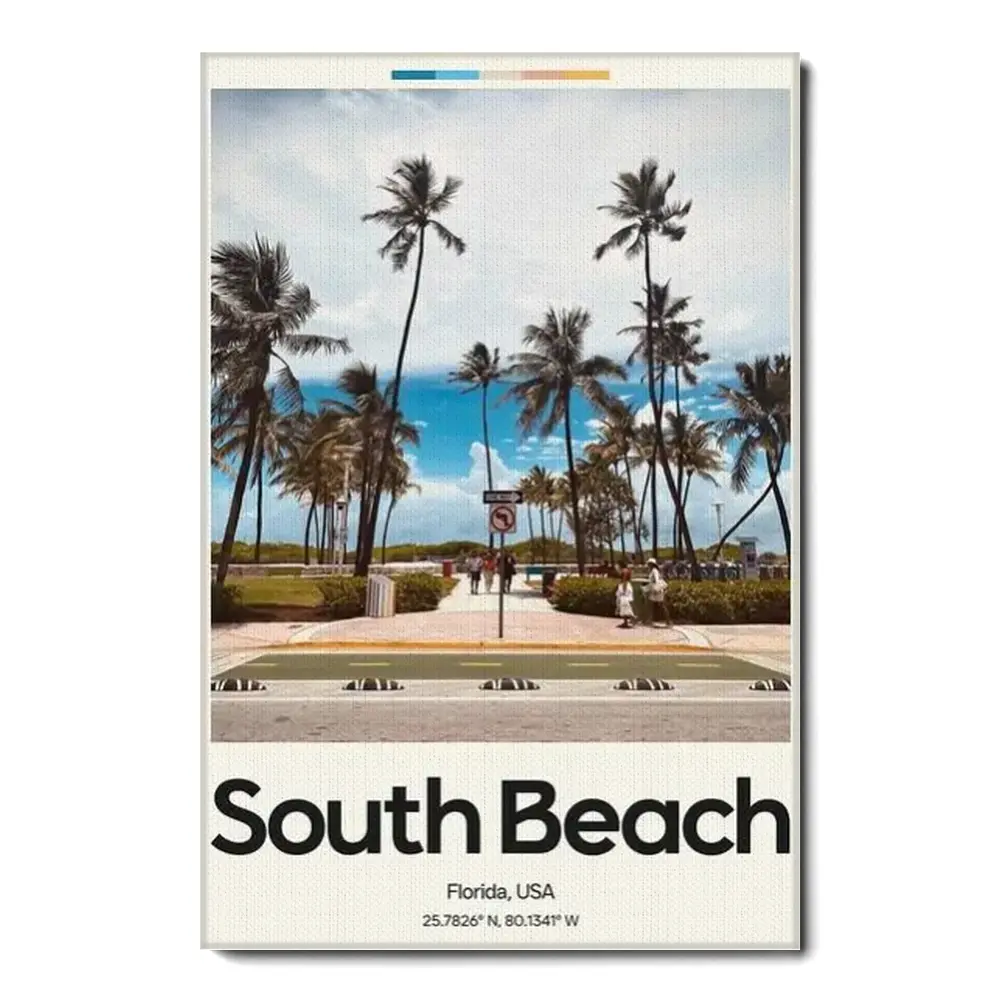 South Beach Poster – Oil Painting Technique | Famous Beach Wall Art | & Printed Travel Prints | Animalistic Home Decor
