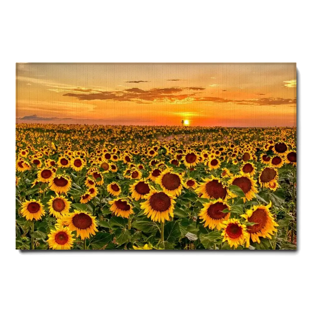 Sunflowers Sunset Colorado Denver International Airport Dial Sunflower Fields Wall Art Canvas Print Acrylic Metal