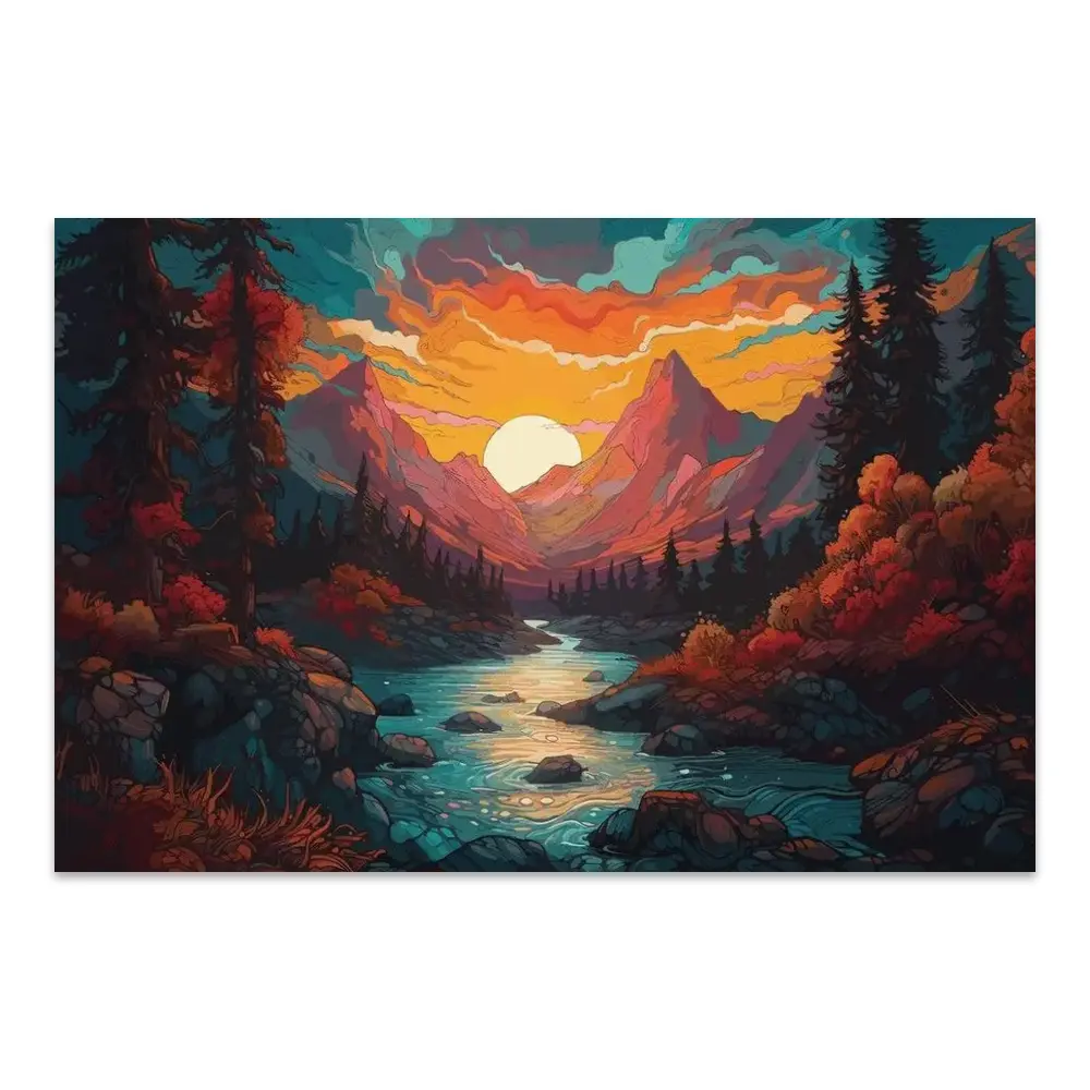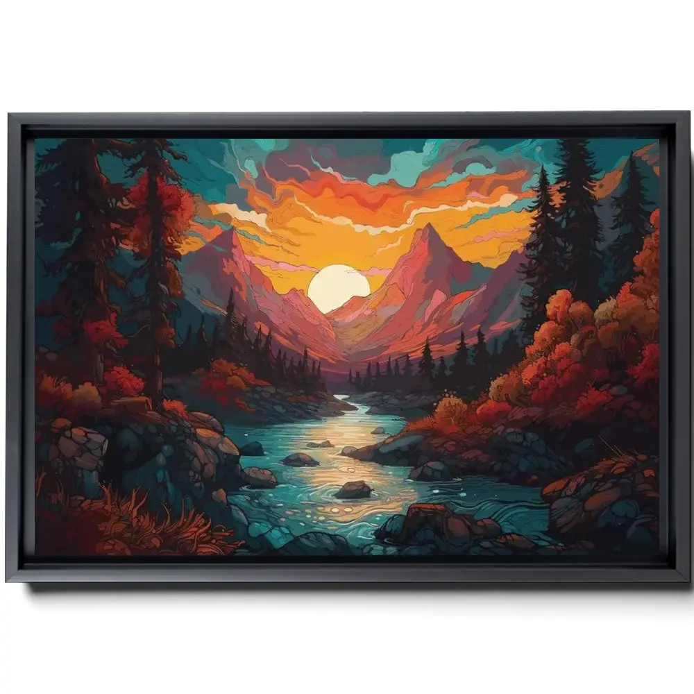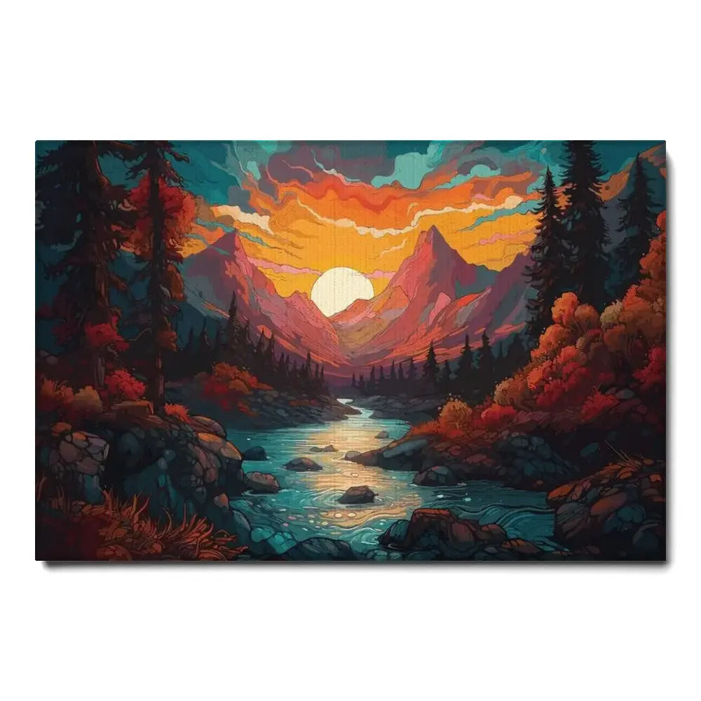 Sunset On Mountain Wall Art Rocky Mountain Canvas Meadows And River Art Ready To Hang Canvas Print Nature Lover Gift