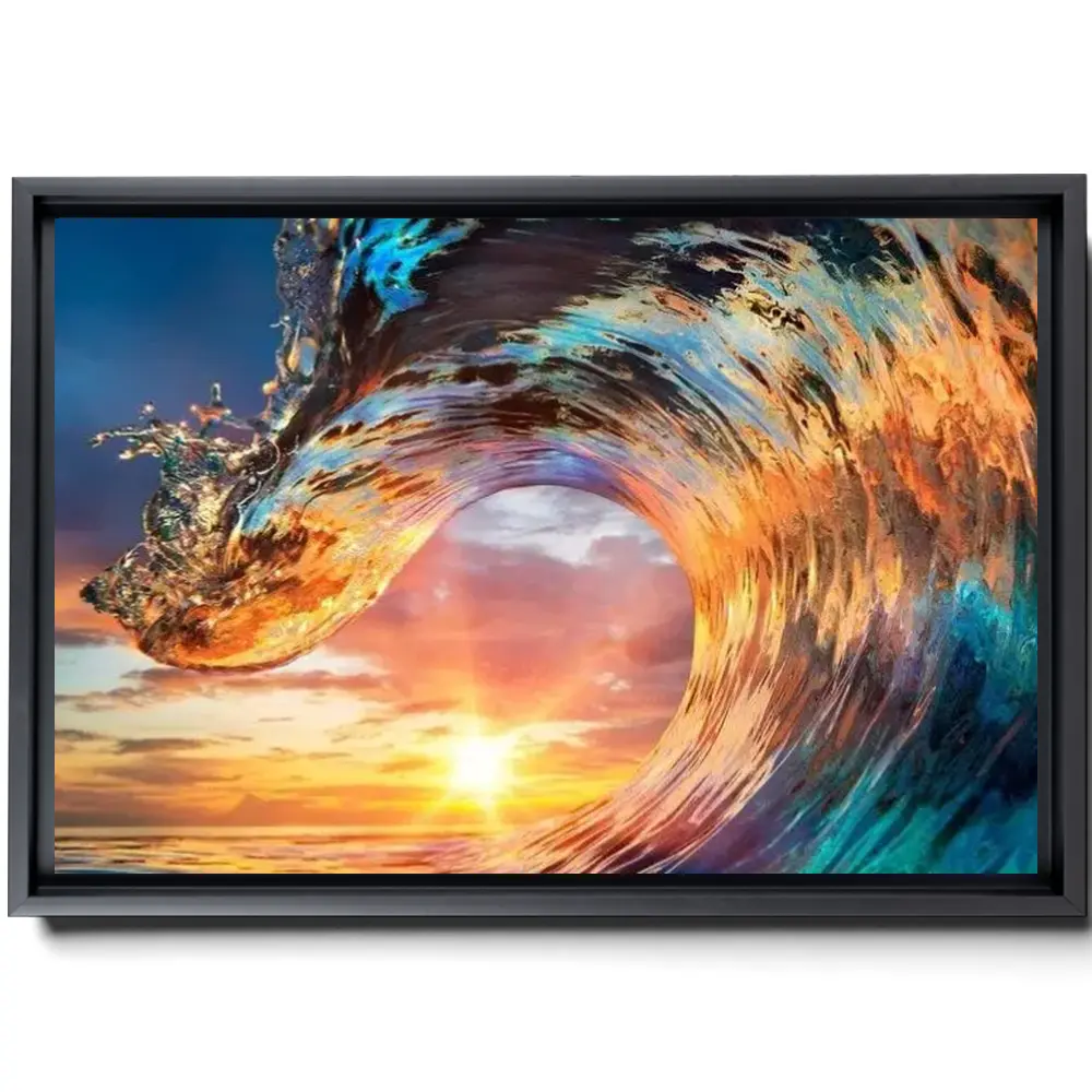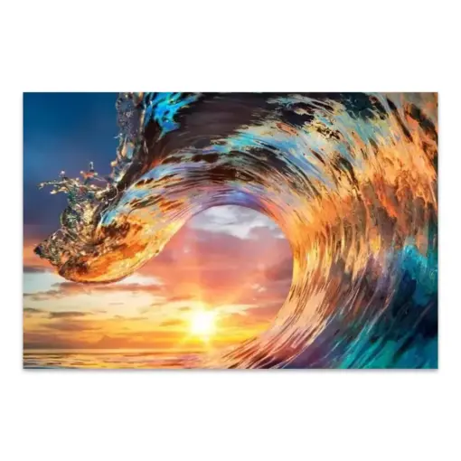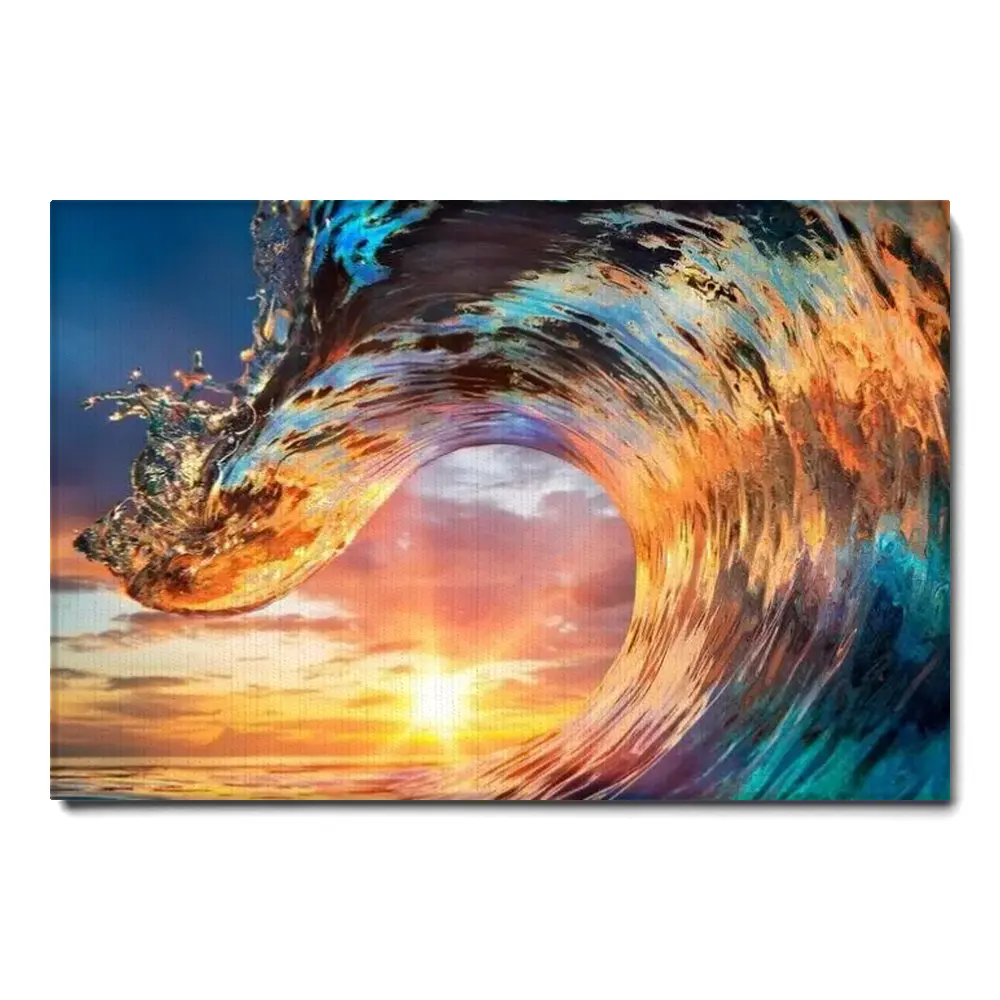 Sunset Through The Sea Wave Wall Art Ocean Surf Canvas Wall Art Living Room Sunset Ocean Art Prints Extra Large Wall Art