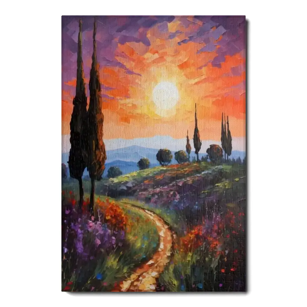 Sunset Vista – European Countryside At Sunset Orange And Purple Glow Over A Tranquil Scene Impressionist Style Landscape – Nature Puzzle