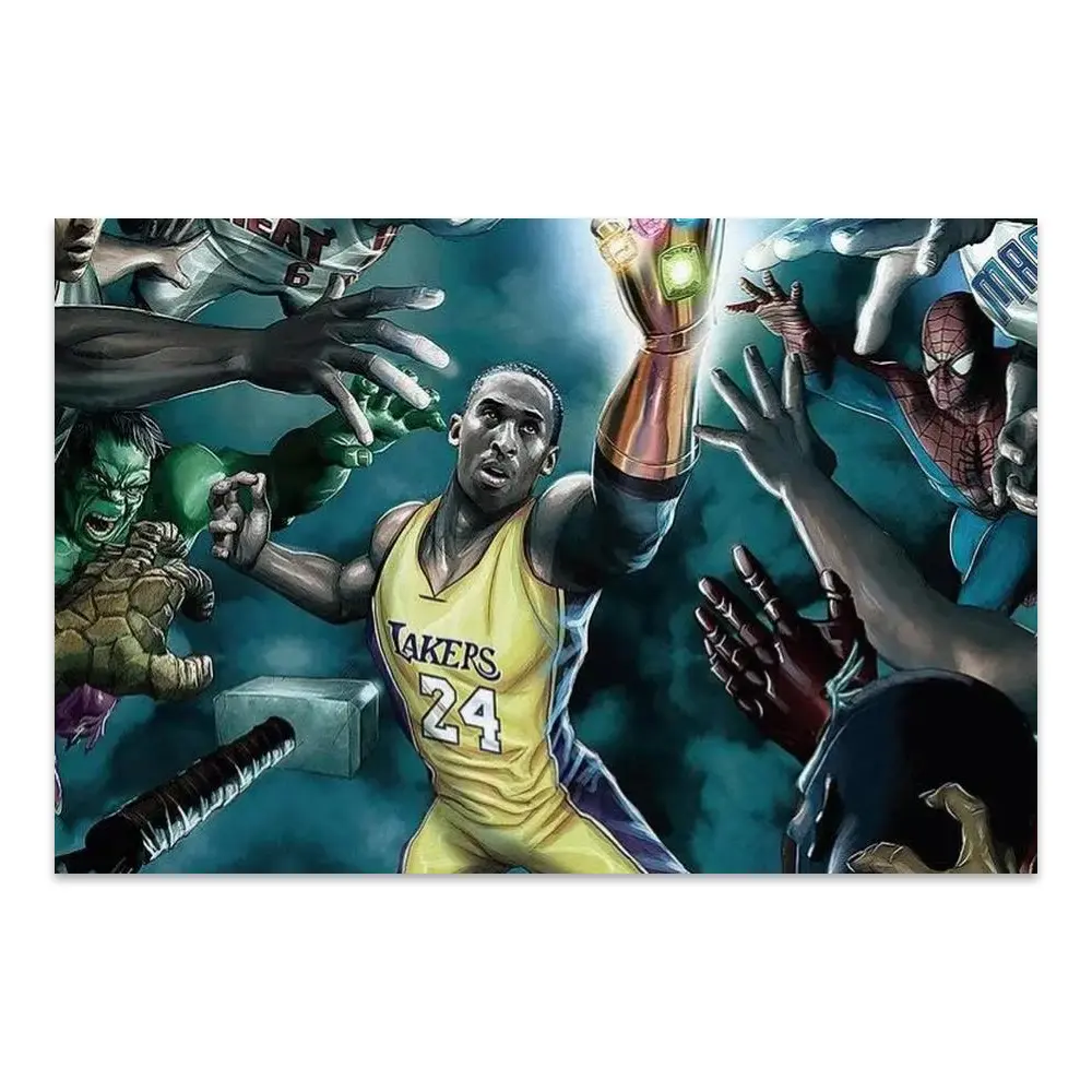 Superheroes Adaptation Canvas Wall Art Cartoon Characters Poster Art , Basketball Player Wall Decor , Ready To Hang , Gift Ideas For Fan