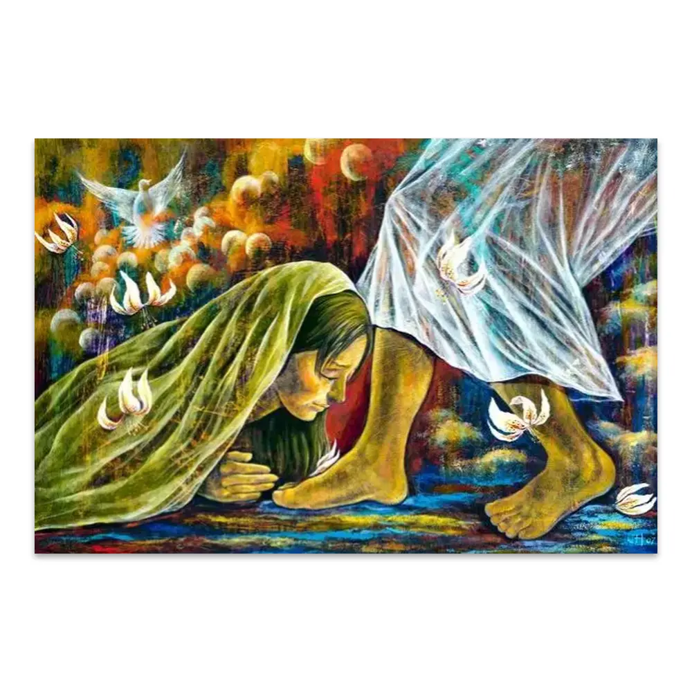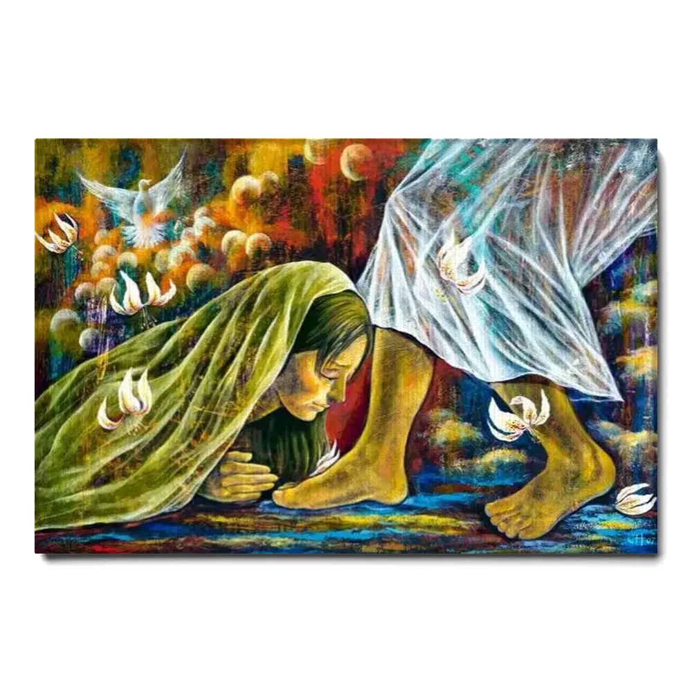 Tears Of Repentance Washing Jesus Feet Art Canvas Print Christian Painting