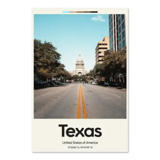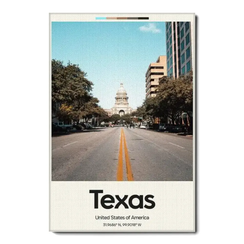 Texas State Poster – Oil Painting Technique | United States Wall Art | & Printed Travel Prints | Animalistic Home Decor