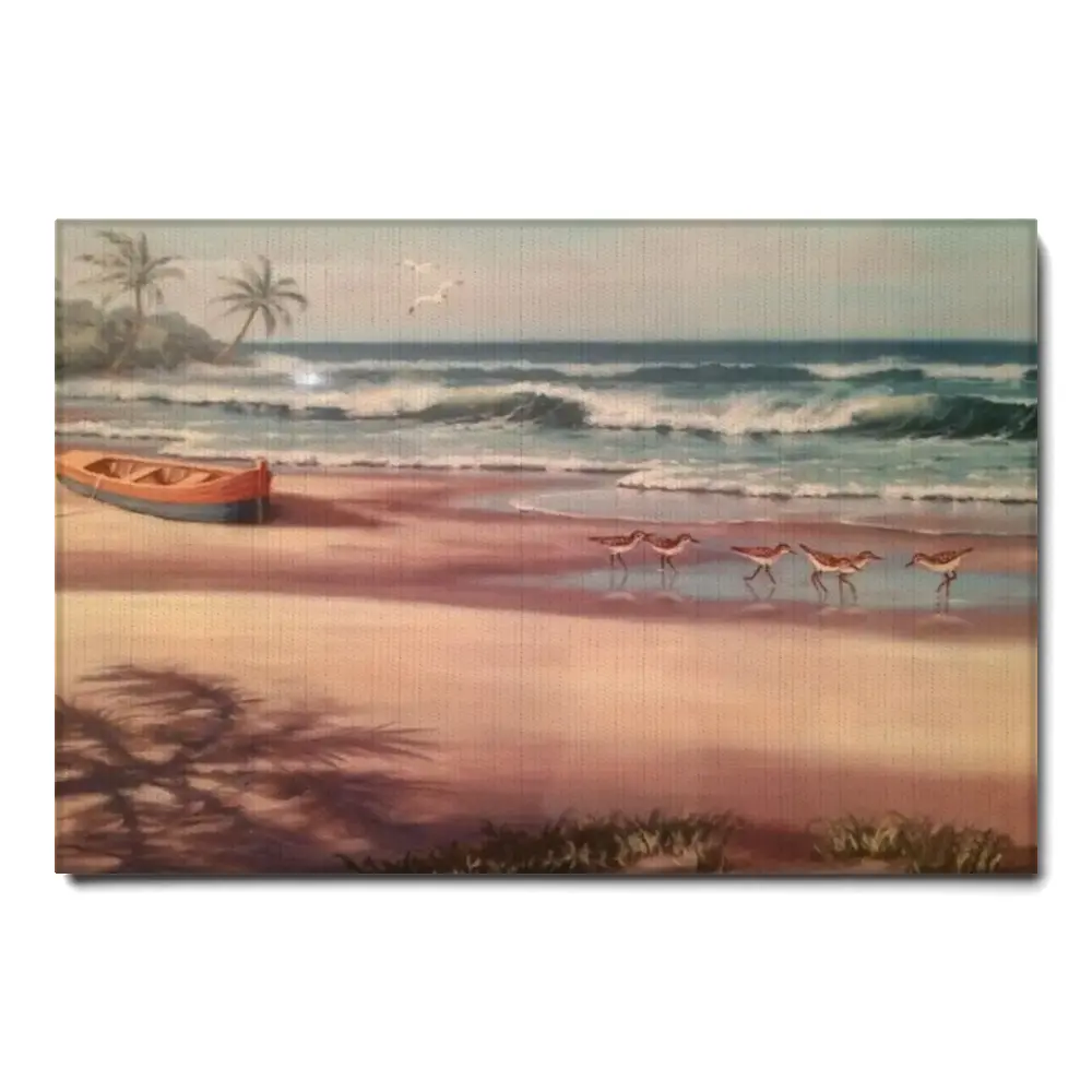 This is a more casual and often more artistic style of canvas presentation. A hanging canvas typically consists of a canvas fabric sheet with two wooden bars attached at the top and bottom. The top bar includes a hanging mechanism, usually a string or a cord, for easy display. This style allows the canvas to hang freely against the wall, giving it a slightly informal, bohemian feel. The canvas in this case can be easily rolled for storage or transport.