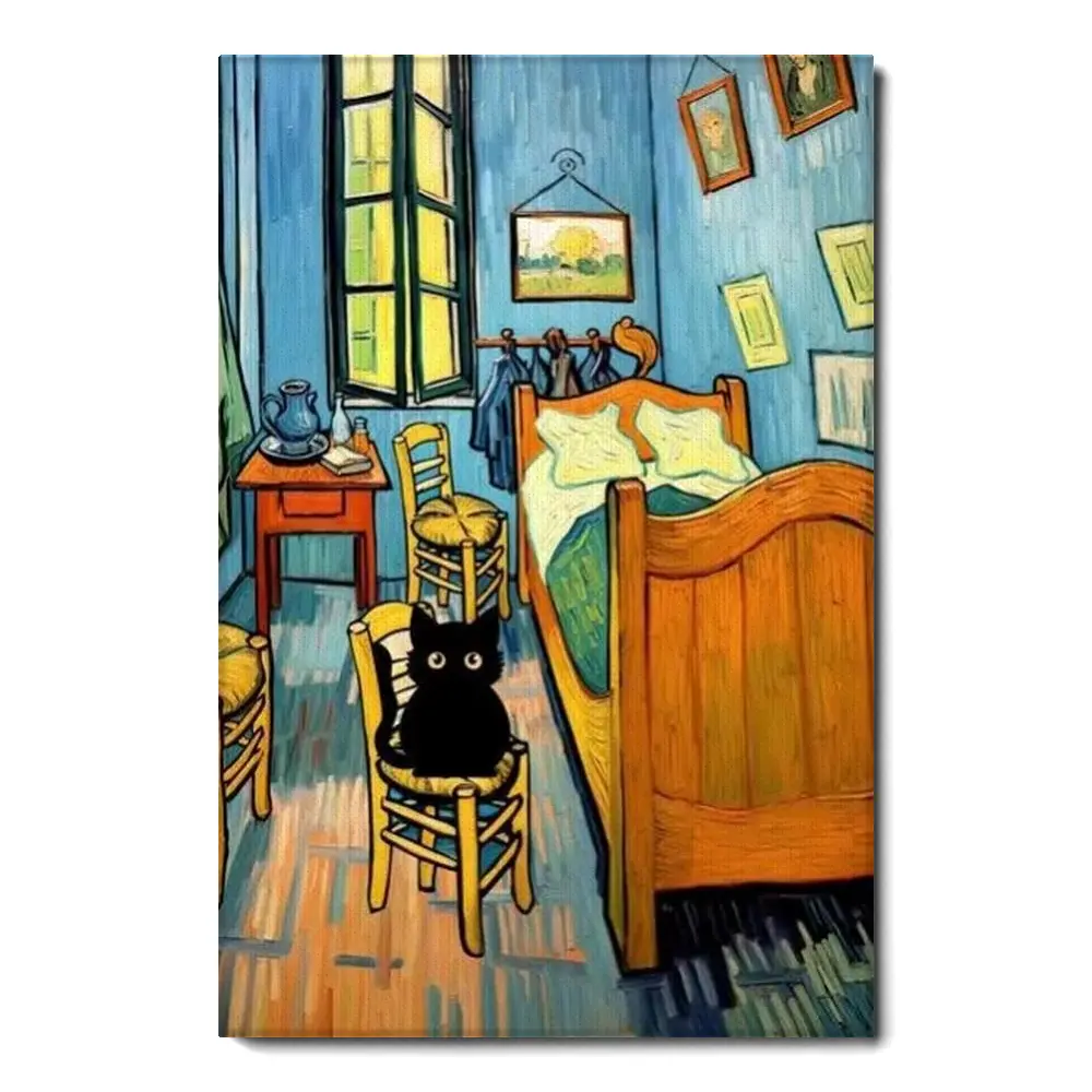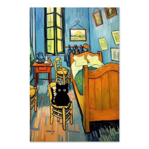 The Bedroom Cat Vincent Van Cat Cute Cat Lover Print Cat Lovers Gift Cat Poster Black Cat Vintage Wall Decor Aesthetic Room