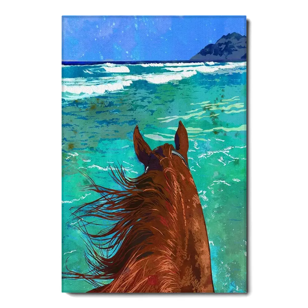 The Horse And The Ocean Watercolor Art Print | Horse Animal Print | Beach Scene