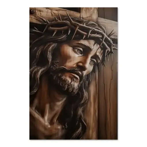 The Jesus Was Crucified On The Cross Painting Canvas Wall Art – Catholic Faith Poster Gift Artwork Decoration For Living Room Bed Room