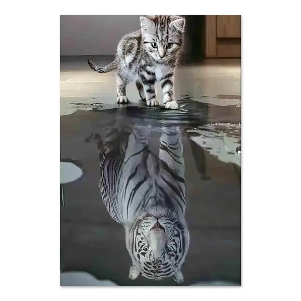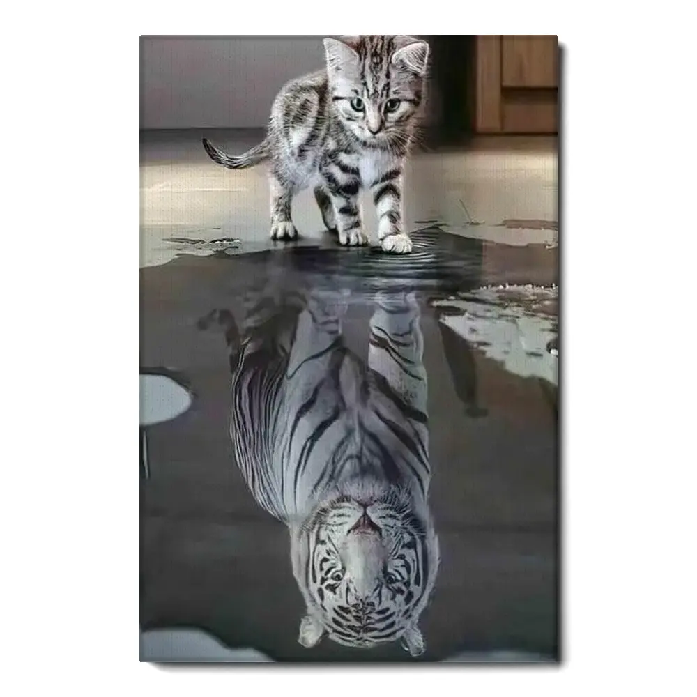 Tiger Reflection Cat Cat Artwork Success Canvas Small Kitten Cat Wall Art Cat Lover Gift Poster Animal Poster