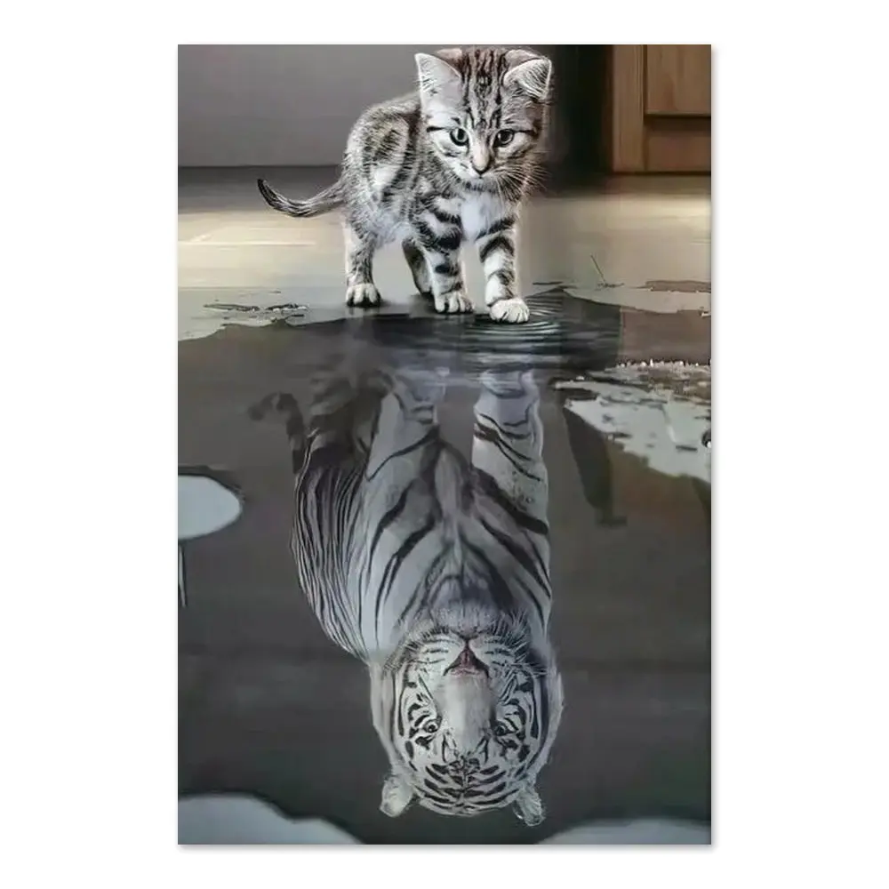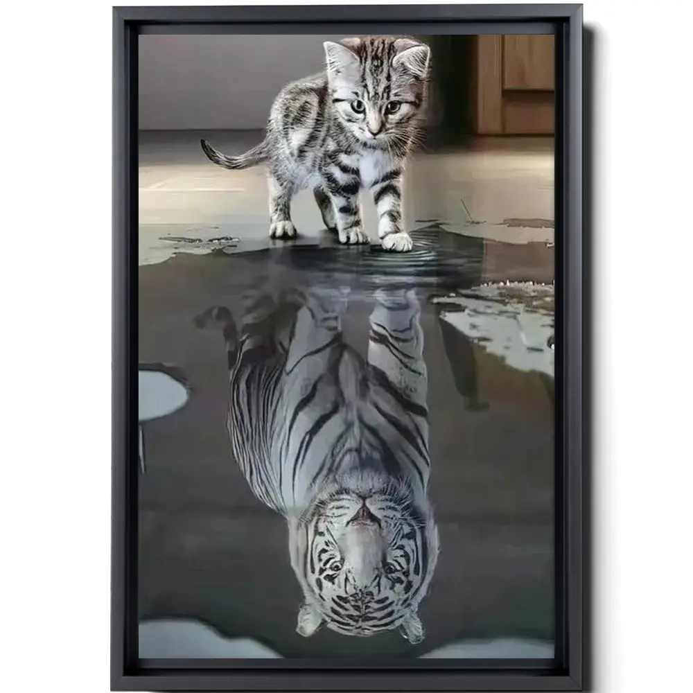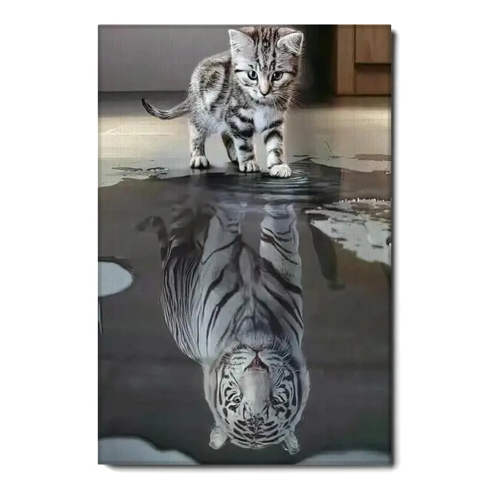 Tiger Reflection Cat Success Wall Decor Animal Canvas Art Tiger Reflection Cat Poster Tiger Canvas Tiger And Cat Artwork