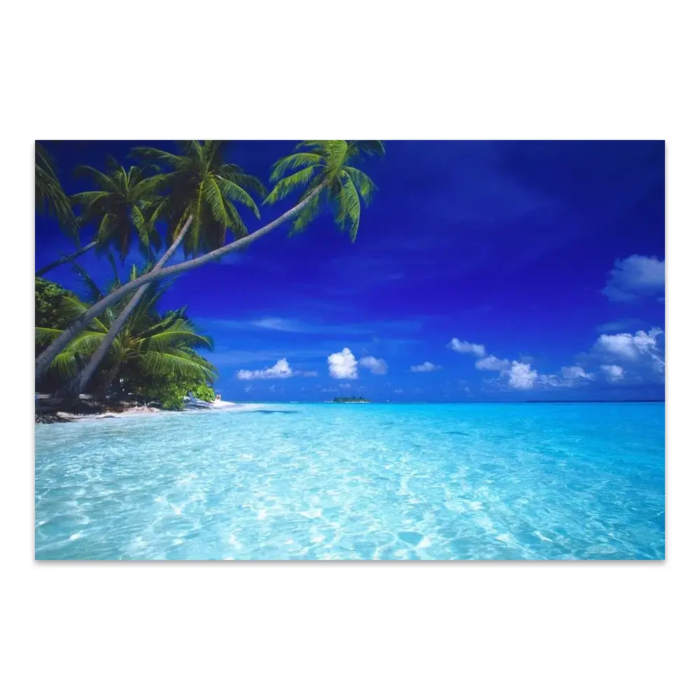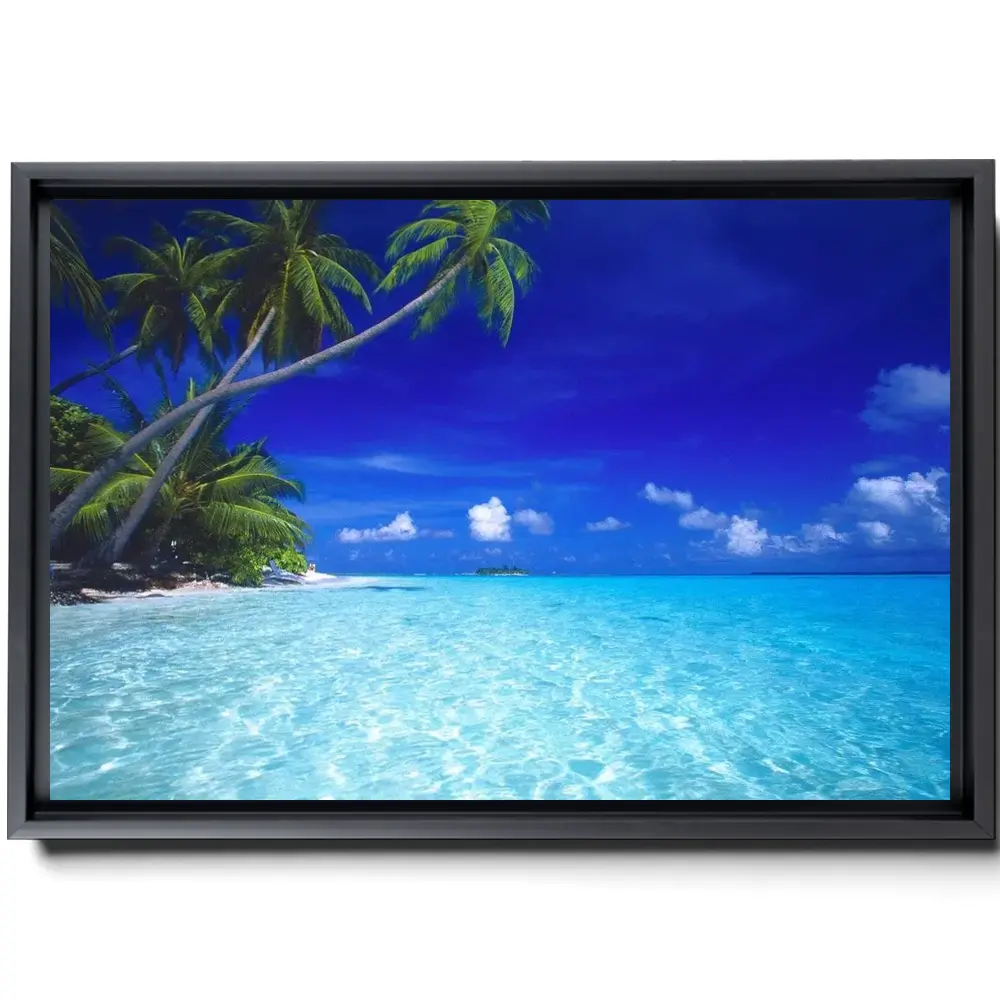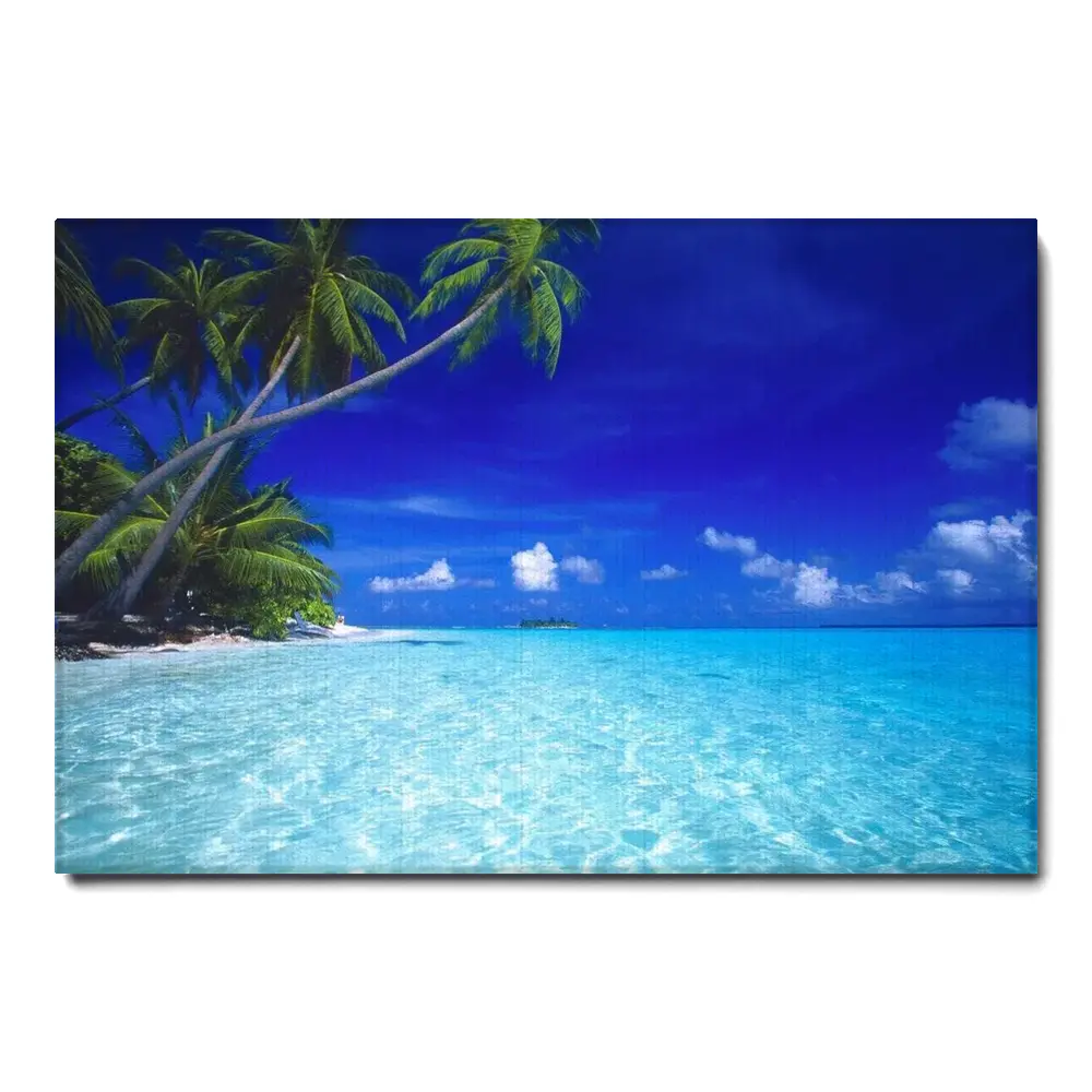 Topical Beach Maldives Blue Lagoon Canvas Print – Beach Canvas Print – Tropical Island Canvas Art – Palm Trees – Oceanfront Art – Cow 5474