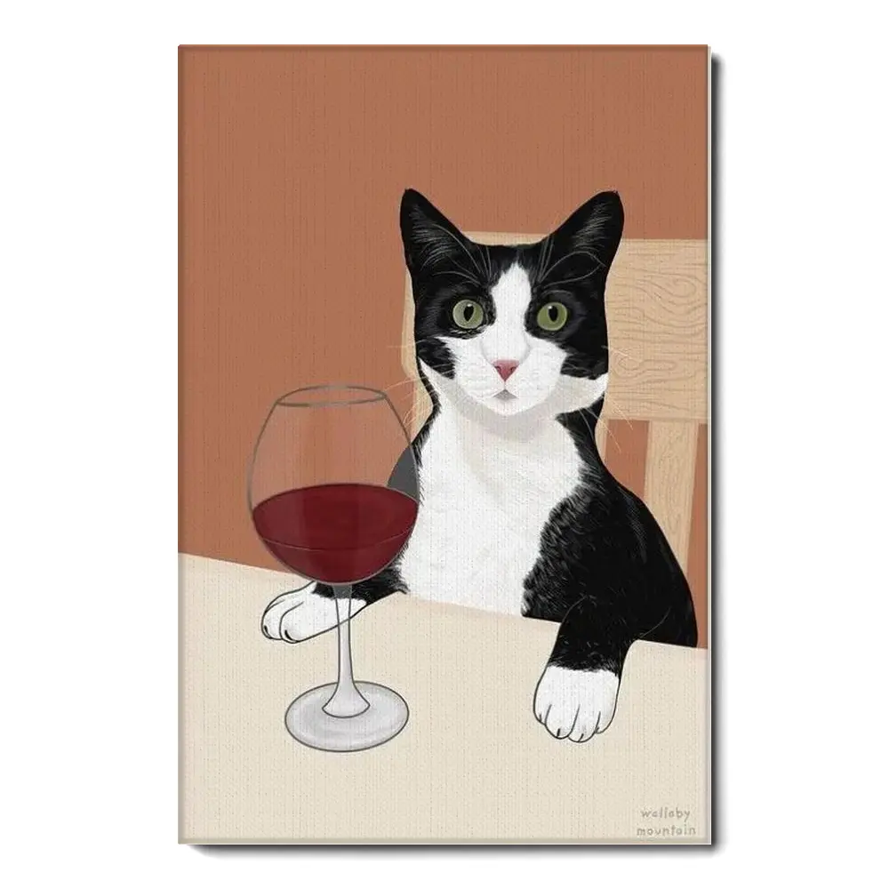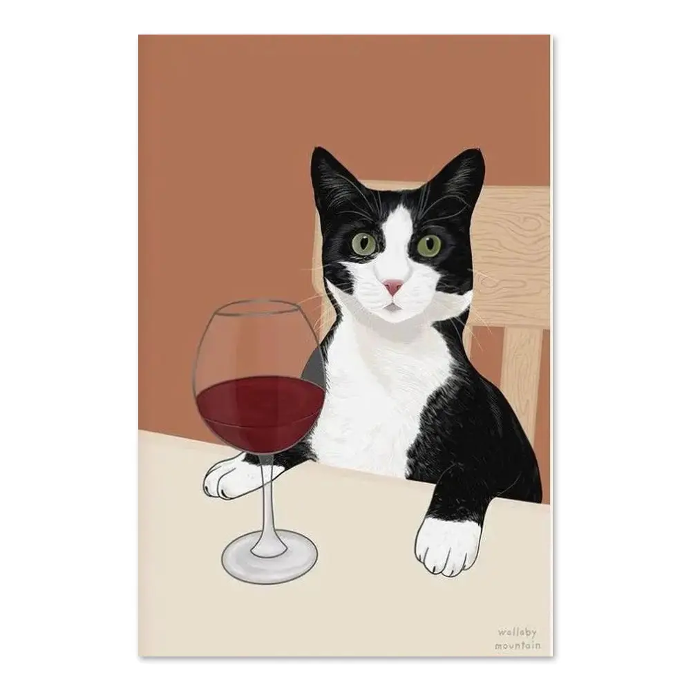 Tuxedo Wine Cat Illustration – Cat Print Cat Art Funny Cat Tuxedo Cat Wine Cat Cat Illustration Funny Cat Print Wine Print Cat