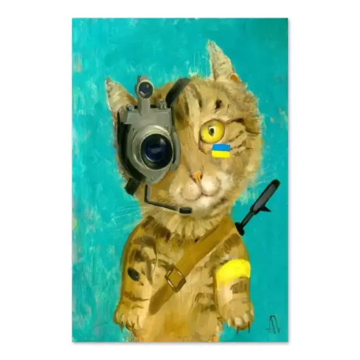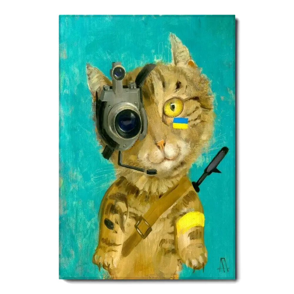 Ukrainian Military Cat Cat Print Oil Art Cat Poster Cat Painting Cat Wall Art Military Cat Nursery Decor Cute Kitten