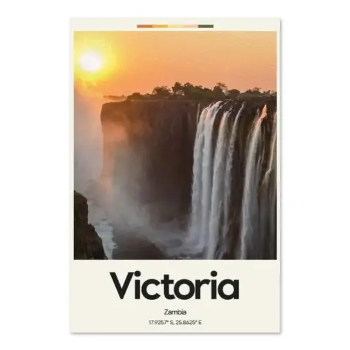 Victoria Falls Poster – Oil Painting Technique | Waterfalls Wall Art | & Printed Travel Prints | Animalistic Home Decor