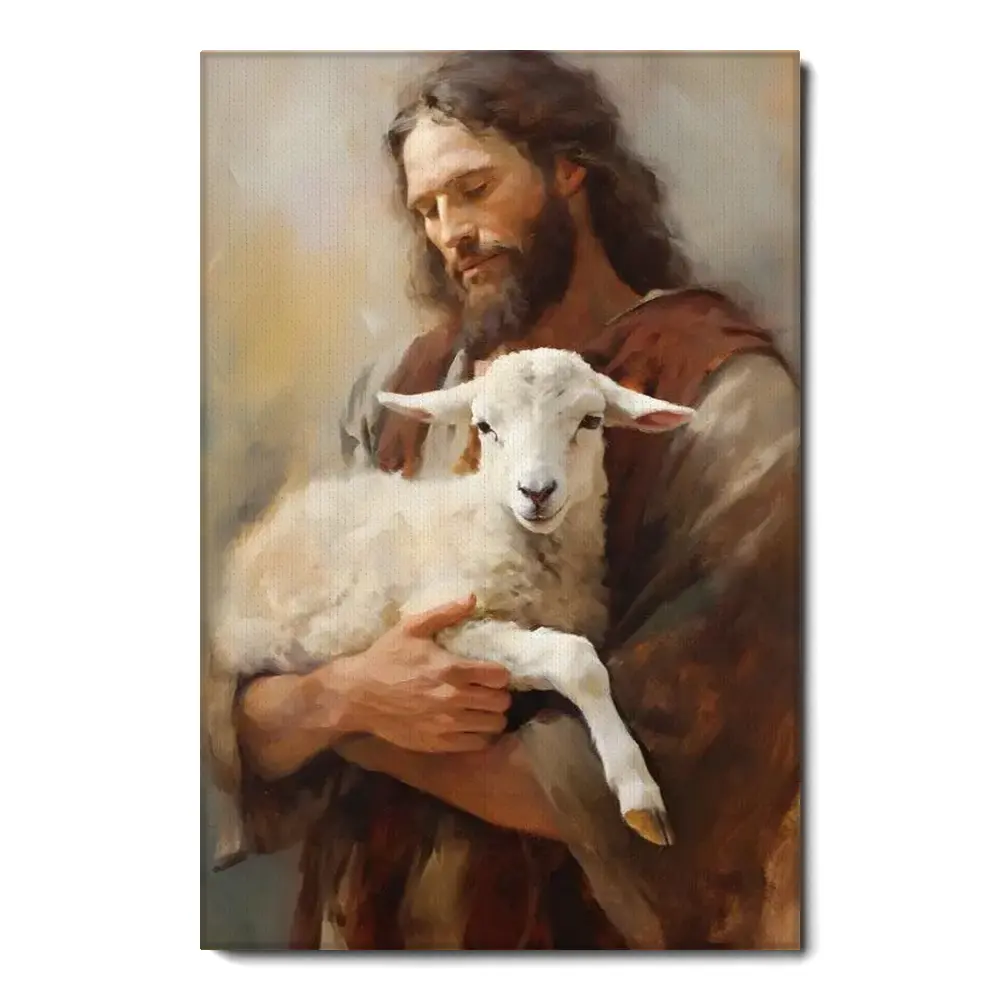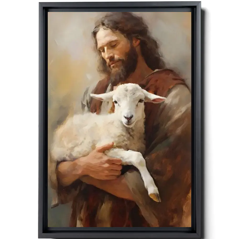 Vintage Jesus Christ The Good Shepherd Oil Painting Print On Framed Canvas Wall Art Christian Decor Church First Communion God Bible Faith