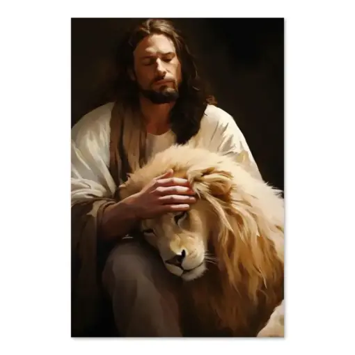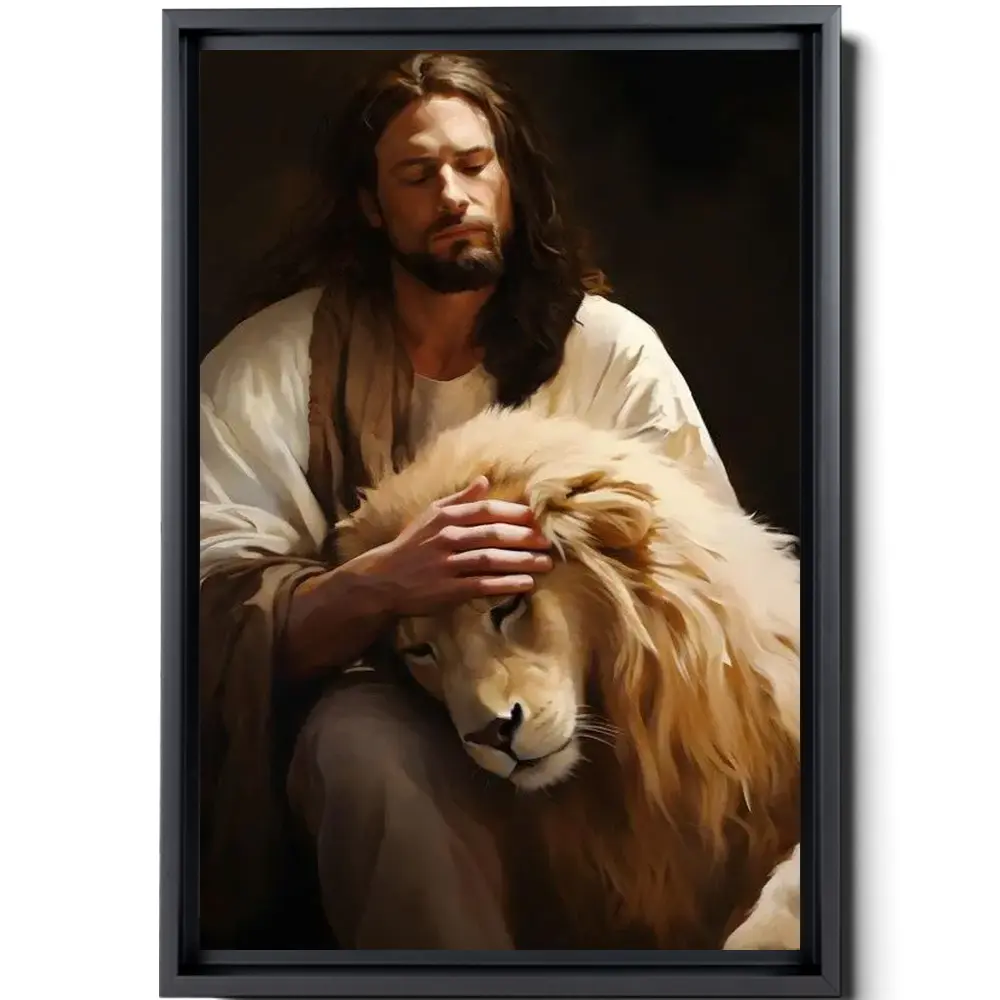 Vintage Jesus Christ The Lion Of Judah Painting Print On Framed Canvas Wall Art | Christian Decor Church God Bible Faith First Communion