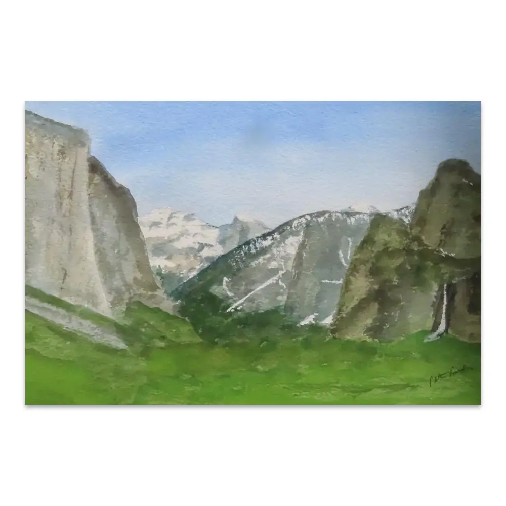 Vista From Tunnel View Of Yosemite Valley Original Watercolor Painting Signed