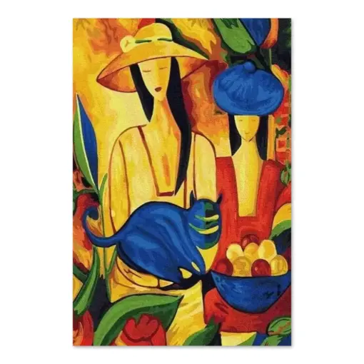 This is a more casual and often more artistic style of canvas presentation. A hanging canvas typically consists of a canvas fabric sheet with two wooden bars attached at the top and bottom. The top bar includes a hanging mechanism, usually a string or a cord, for easy display. This style allows the canvas to hang freely against the wall, giving it a slightly informal, bohemian feel. The canvas in this case can be easily rolled for storage or transport.