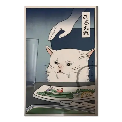Be the first to review “Wallace Flower Poster Smudge Cat Art And Wine Wall Sign Cat Yelling Woman White Cat Art”