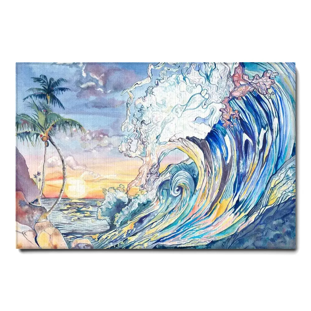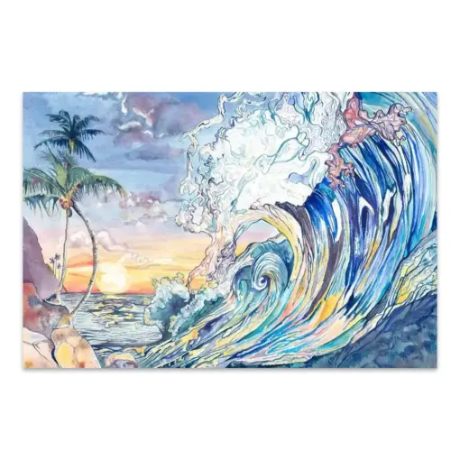 Watercolor Art Paper Print Of A Breaking Wave Colorful Beach Wall Art Glee Print