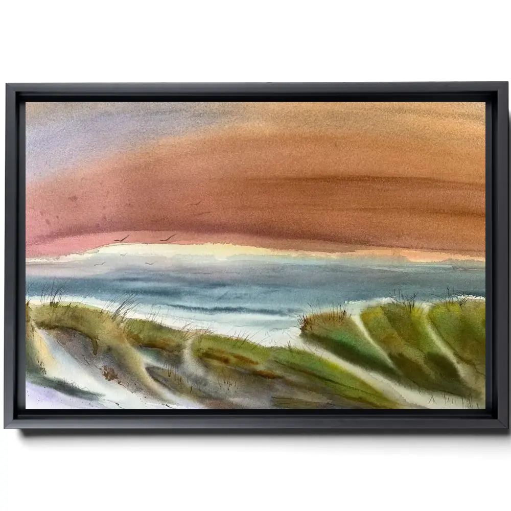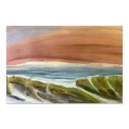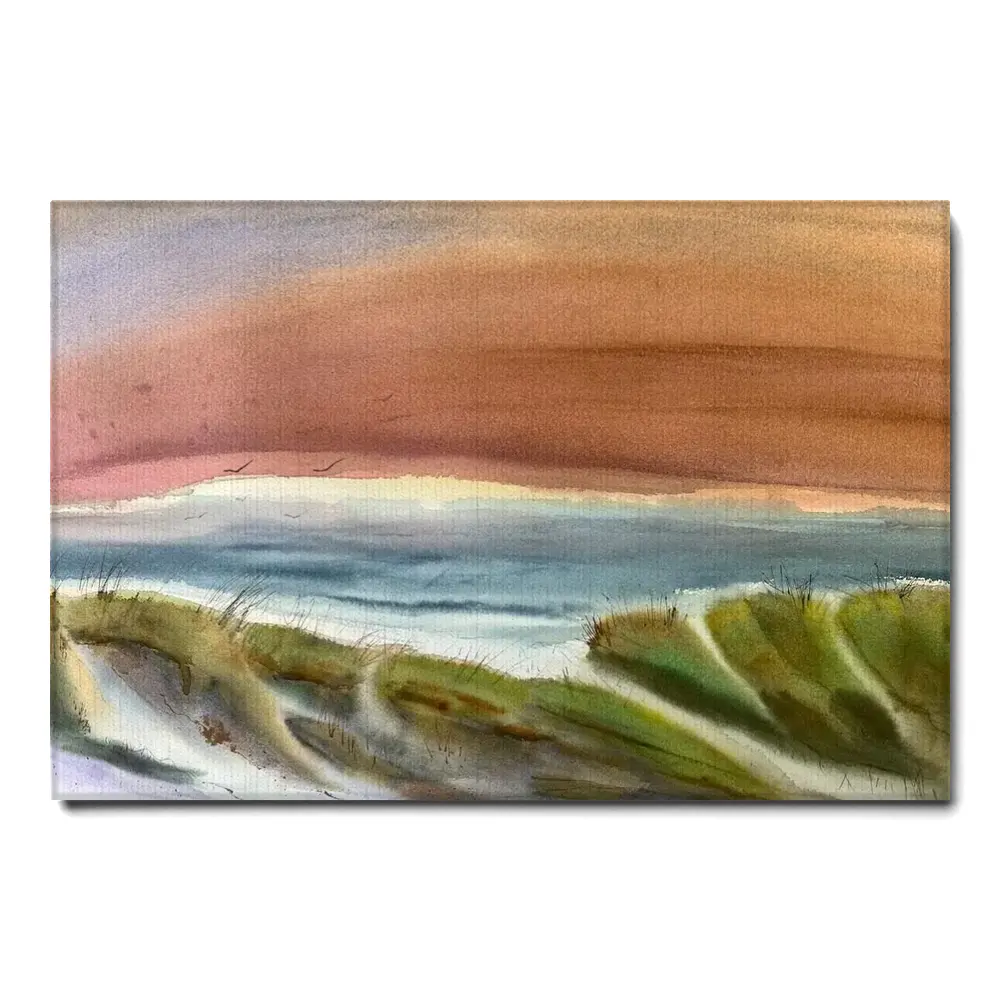 Watercolor Painting Artwork Wall Decor Orange Blue Gift Beach Seascape Dunes