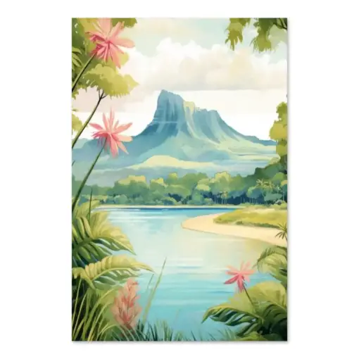 Watercolor Print | Africa Gift | Tropical Decor | Indian Ocean | Coastal Landscape | Seaside | African | Coastline | Mountains Art