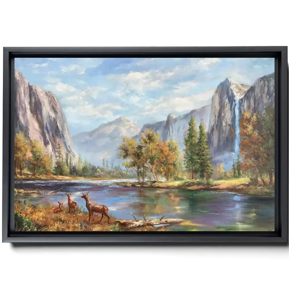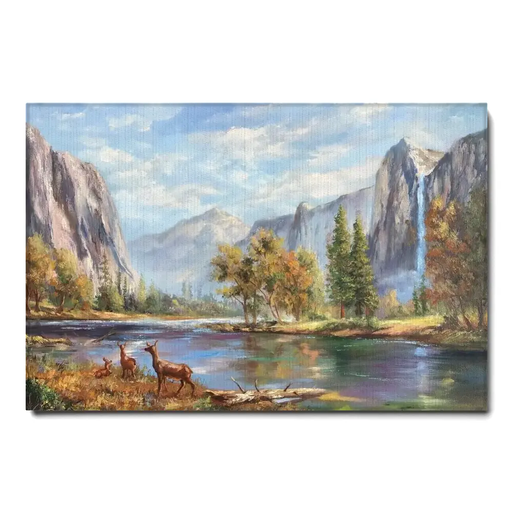 Waterfall Painting Yosemite Original Art Mountain Scenery Landscape Painting National Park Art Deer Original Oil Art 18 By 24