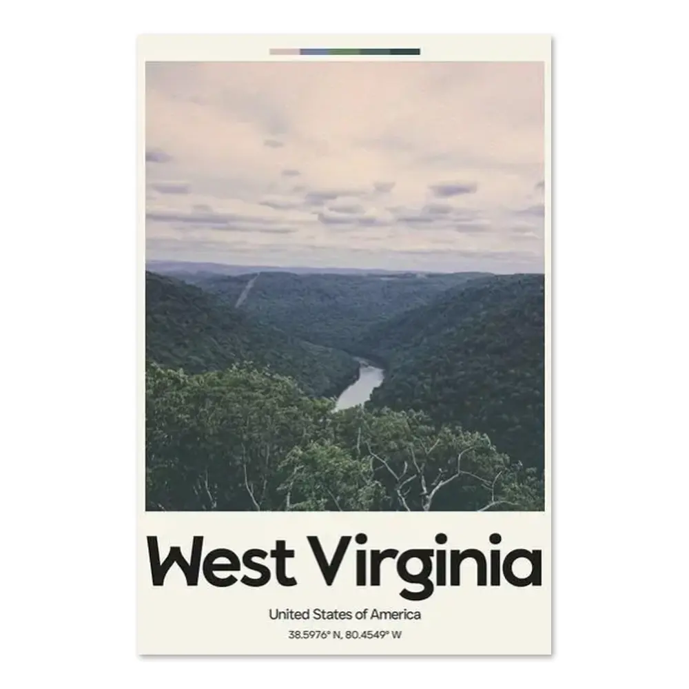 West Virginia Poster – Oil Painting Technique | United States Wall Art | & Printed Travel Prints | Animalistic Home Decor