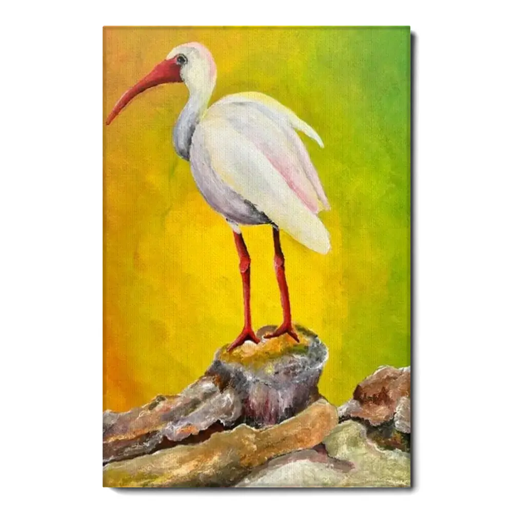 White Ibis Original Painting Acrylic Bird Art On Inch Canvas Beach House Decor Original Canvas Art