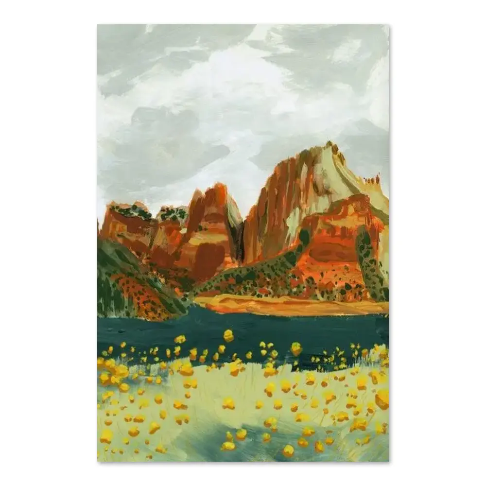 Zion Art Print | American National Park Landscape Painting | Above Bed Art | Cabin Decor | Pine Valley Mountains Poster | Large Wall Art