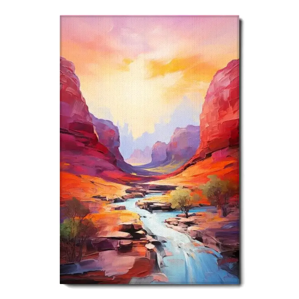This is a more casual and often more artistic style of canvas presentation. A hanging canvas typically consists of a canvas fabric sheet with two wooden bars attached at the top and bottom. The top bar includes a hanging mechanism, usually a string or a cord, for easy display. This style allows the canvas to hang freely against the wall, giving it a slightly informal, bohemian feel. The canvas in this case can be easily rolled for storage or transport.