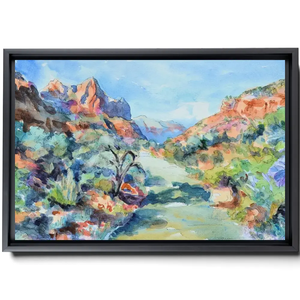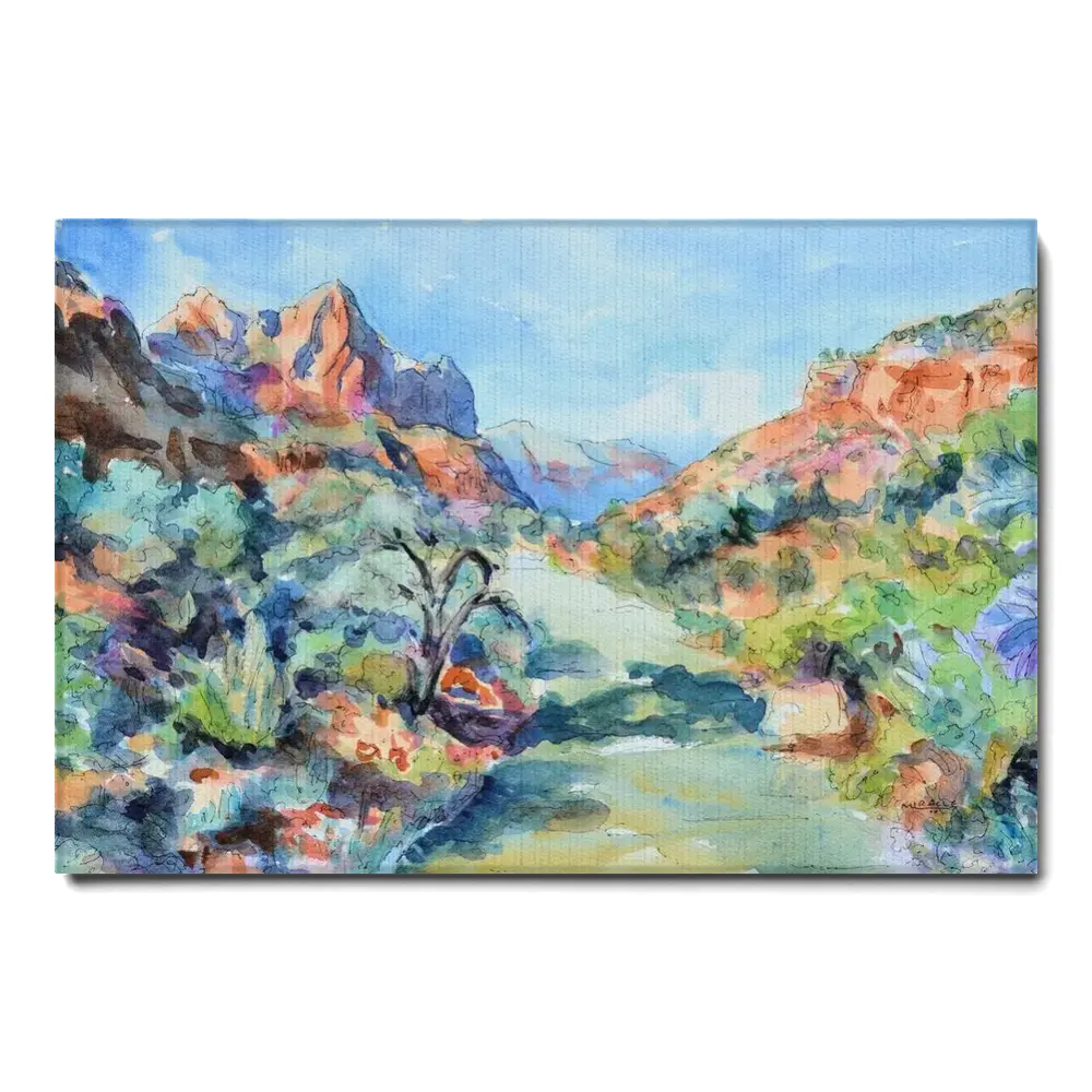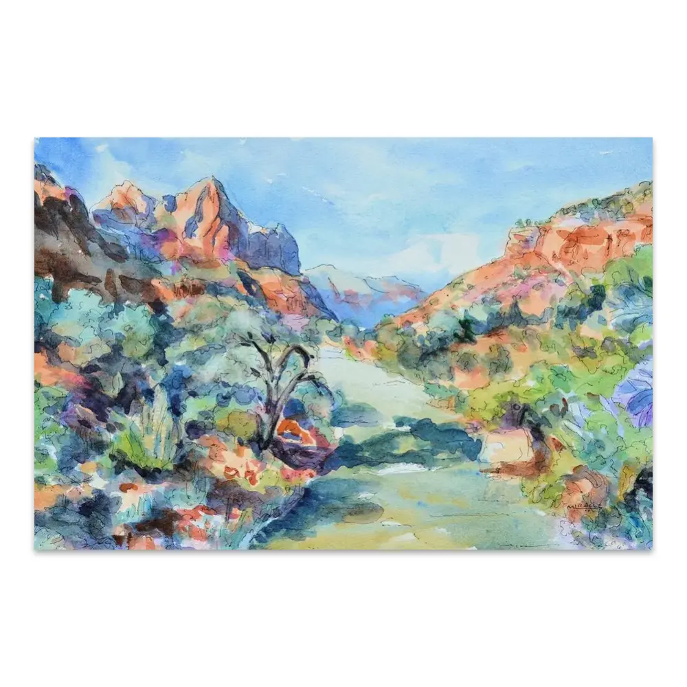 Zion Vista Iv With Virgin River Original Painting Watercolor Pen And Ink Travel Mountains River Impressionist Miracle