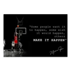 Michael Jordan Last Shot Canvas – Make It Happen Poster – Gift For Basketball Lover – Ready To Hang Canvas Motivational Hype Christmas Gift