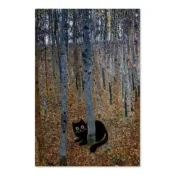 Gustav List Flower Garden Black Cat Poster | Drinkable Wall Art | List Flower Garden With Black Cat Print | Funny Cat Pet Portrait