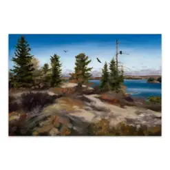 Bald Eagles Soaring And Perching On Rocky Cliff Vista Over Andrew Bay Lake Of The Woods Canada Wilderness Glee Artwork Print