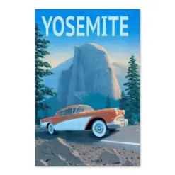 Yosemite With Text By Richard Courtney Traditional American Family Road Trip Poster Classic Car Garage Poster National Park Print